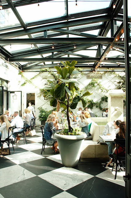 We ate in the sun-filled atrium room. Guests are seated around a burbling fountain and the energy in the room was lively!