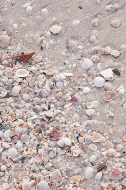 After turning our backs to the water and examining the shells for a few moments, we turned back around to find that the light had shifted. It was now bathing the water and sky with a lovely blue-gold-pale green color that was positively captivating!